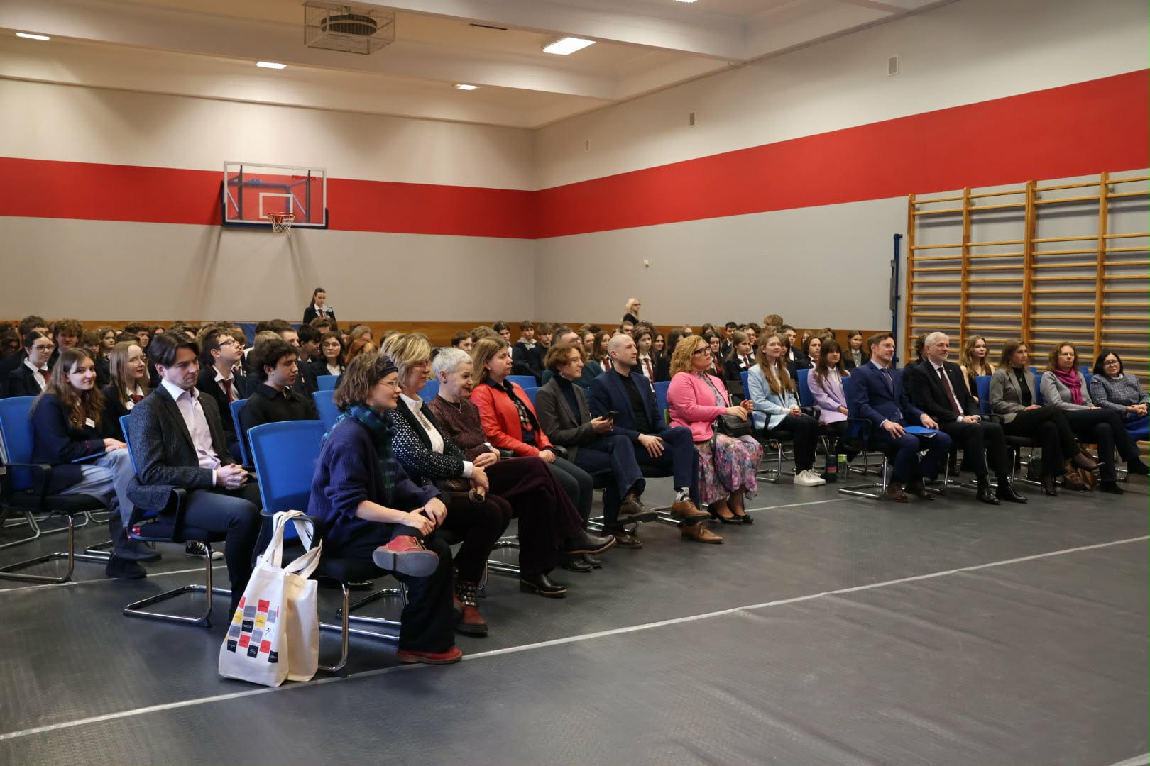 Swoją obecnością zaszczycili nas: Łódzki Kurator Oświaty: pan Janusz Brzozowski, attaché kulturalny Ambasady Niemiec: pan Thorsten Kerp i pani Anouk Kubenz, dyrektor działu językowego Instytutu Goethego w Warszawie: pani Anja Geissel oraz pani Bodil Jessen-Klingenberg - koordynatorka programu PASCH w Polsce, prezes PSNJN: pani Agnieszka Świca, konsultankta metodyczna ŁCDNiKP: pani Ewa Ciemincka, dyrektor Centrum Egzaminacyjnego Instytutu Goethego: dr Elżbieta Tomasi-Kapral oraz dyrektor VIII LO im. Adama Asnyka w Łodzi pani Anna Panek.