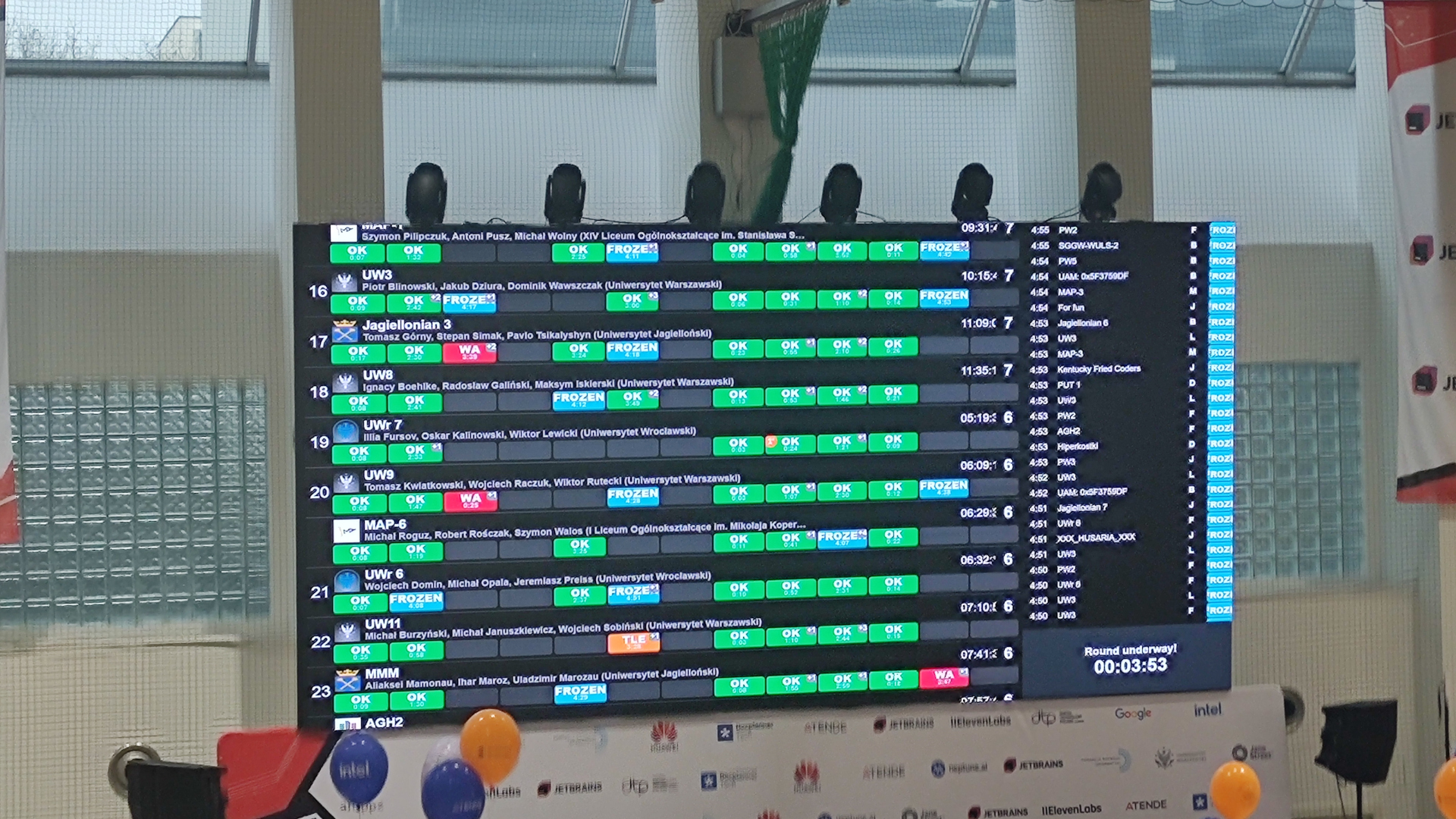 W zawodach wzięły udział 62 drużyny z uczelni wyższych oraz 7 drużyn ze szkół średnich biorących udział w projekcie MAP (Mistrzostwa w Algorytmice i programowaniu).