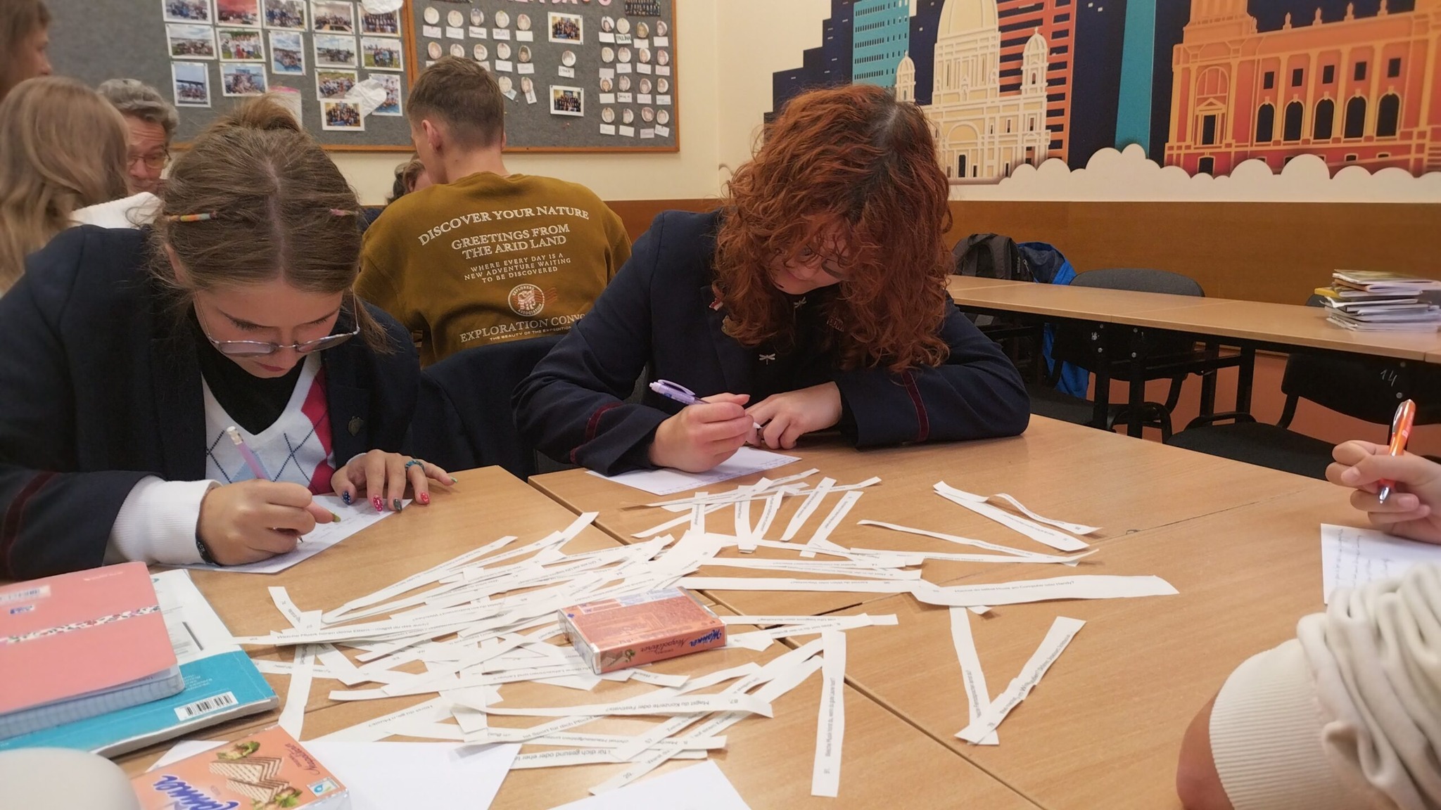 W dniach 29 września - 3 października naszą szkołę odwiedziła grupa z Wels w Austrii w ramach programu Erasmus+. Młodzież wraz z opiekunami rozpoczęła swoją wizytę w Polsce od zwiedzania Muzeum Auschwitz-Birkenau. Przez kolejne dni grupa gości poznawała nasze miasto oraz szkołę. Program obejmował m.in. zwiedzanie centrum Łodzi (naszym przewodnikiem był prof. Przemysław Dudek), wizytę w Białej Fabryce Geyera, aktywny udział w lekcjach języka niemieckiego i angielskiego, warsztaty kulinarne oraz wspólne wyjście na kręgle. Pobyt austriackiej młodzieży w naszym mieście, a przede wszystkim szkole, był świetną okazją do wzajemnego poznania się i nawiązania ciekawych kontaktów. Dziękujemy wszystkim uczniom, którzy zaangażowali się w ten międzynarodowy projekt.