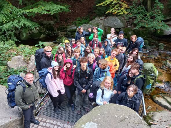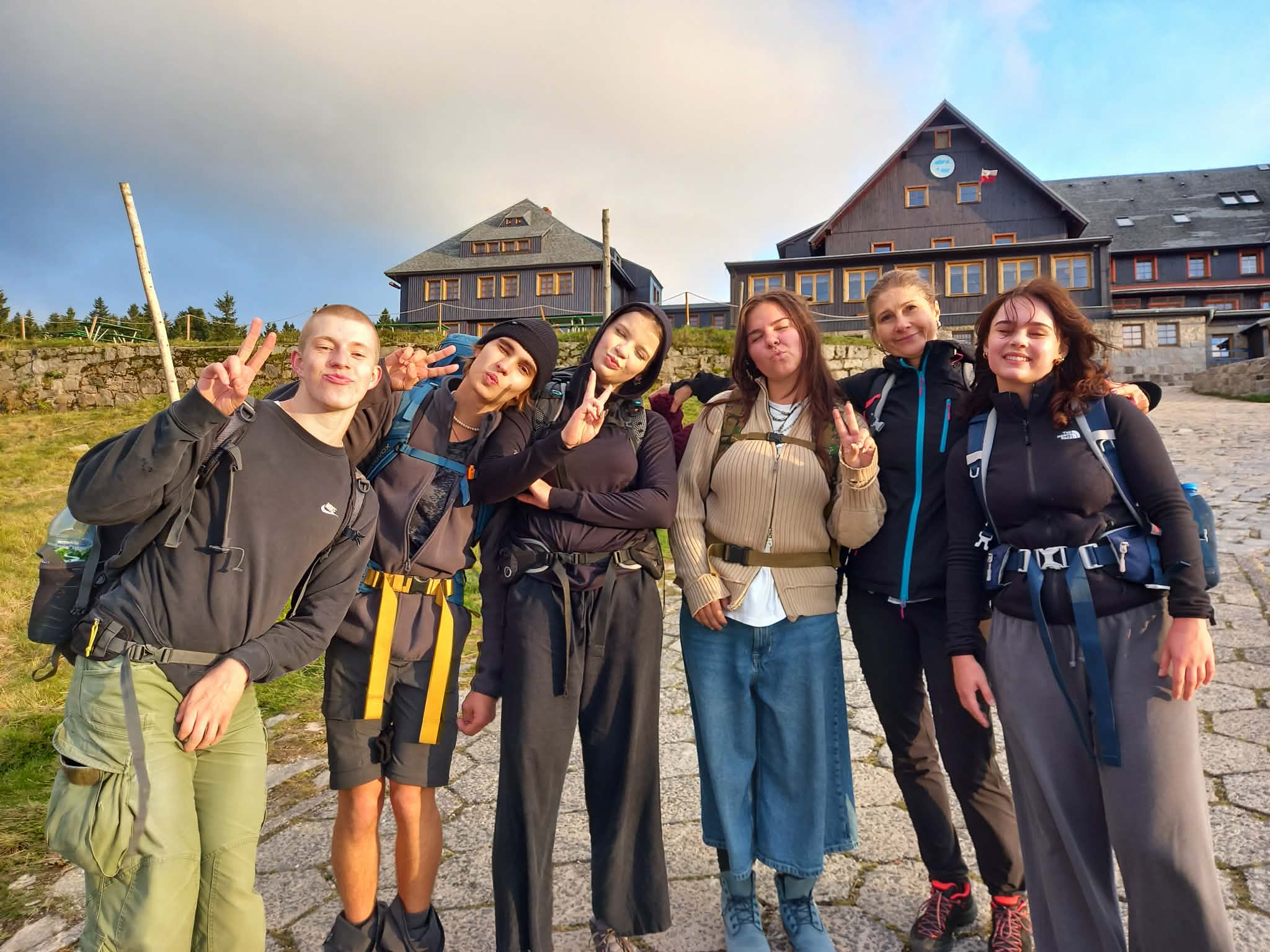 W dniach 24-27 września grupa uczniów naszej szkoły wybrała się na wycieczkę w Karkonosze. Nie była to typowa wycieczka szkolna, lecz wędrówka z plecakami od schroniska do schroniska. Rozpoczęliśmy ją pod wodospadem Szklarki, skąd przeszliśmy do wodospadu Kamieńczyka i na Halę Szrenicką. Przygodą była wieczorna "przebieżka" na Szrenicę. Najdłuższą, bo ponad 20-kilometrową trasę przebyliśmy drugiego dnia. Był to spacer czerwonym szlakiem tzw. Drogą Przyjaźni Polsko-Czeskiej. Pogoda była dość wymagająca, dlatego miło było ogrzać się w schronisku Odrodzenie. Po drodze wiatr odsłonił dla nas piękne widoki na Śnieżne Kotły oraz Kocioł Wielkiego Stawu ze schroniskiem Samotnia w dole. Po noclegu w Śląskim Domu trzeciego dnia czekała na nas królowa Karkonoszy - Śnieżka (1603 m n.p.m.) oraz Skalny Stół. Dość zmęczeni, ale szczęśliwi zeszliśmy do Karpacza, aby czwartego dnia zwiedzić jeszcze kopalnię złota w Złotym Stoku.