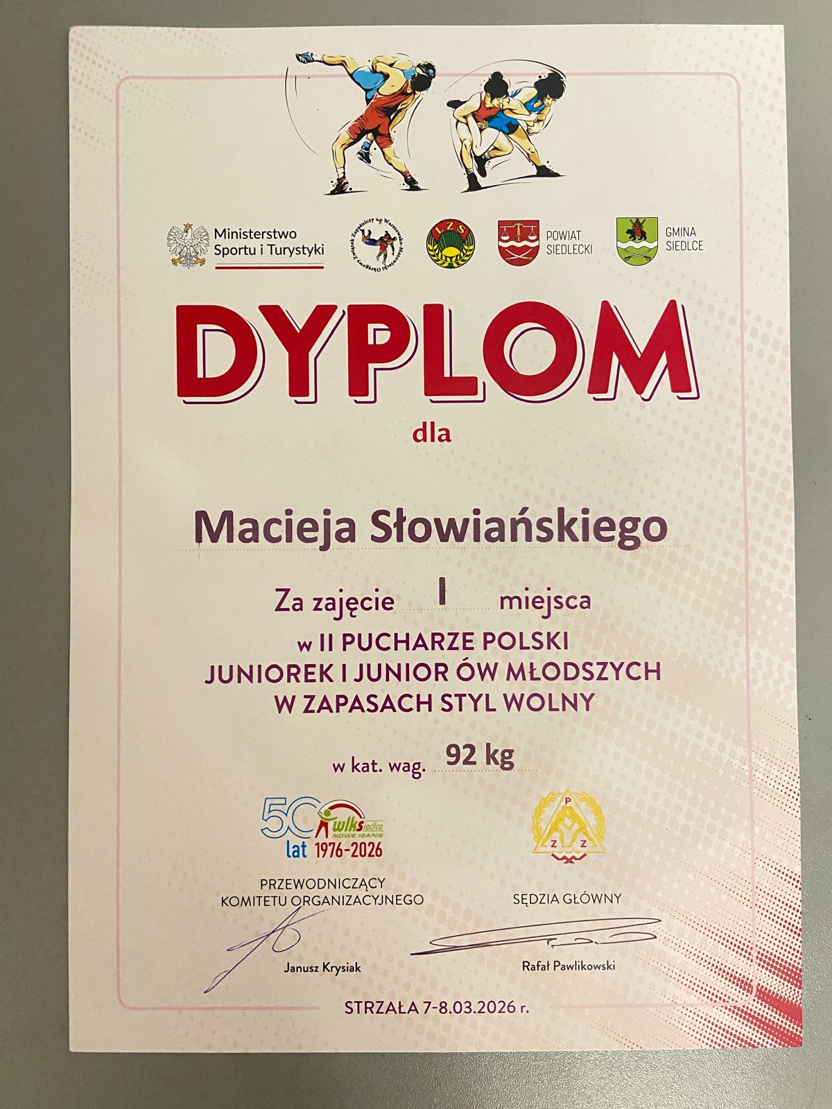 Uczeń klasy ID Maciej Słowiański zajął I miejsce w II Pucharze Polski Kadetów, który odbył się w miniony weekend (6-8 marca). Wcześniej Maciej zdobył również złoty medal na I Pucharze Polski Kadetów (30.01-1.02).