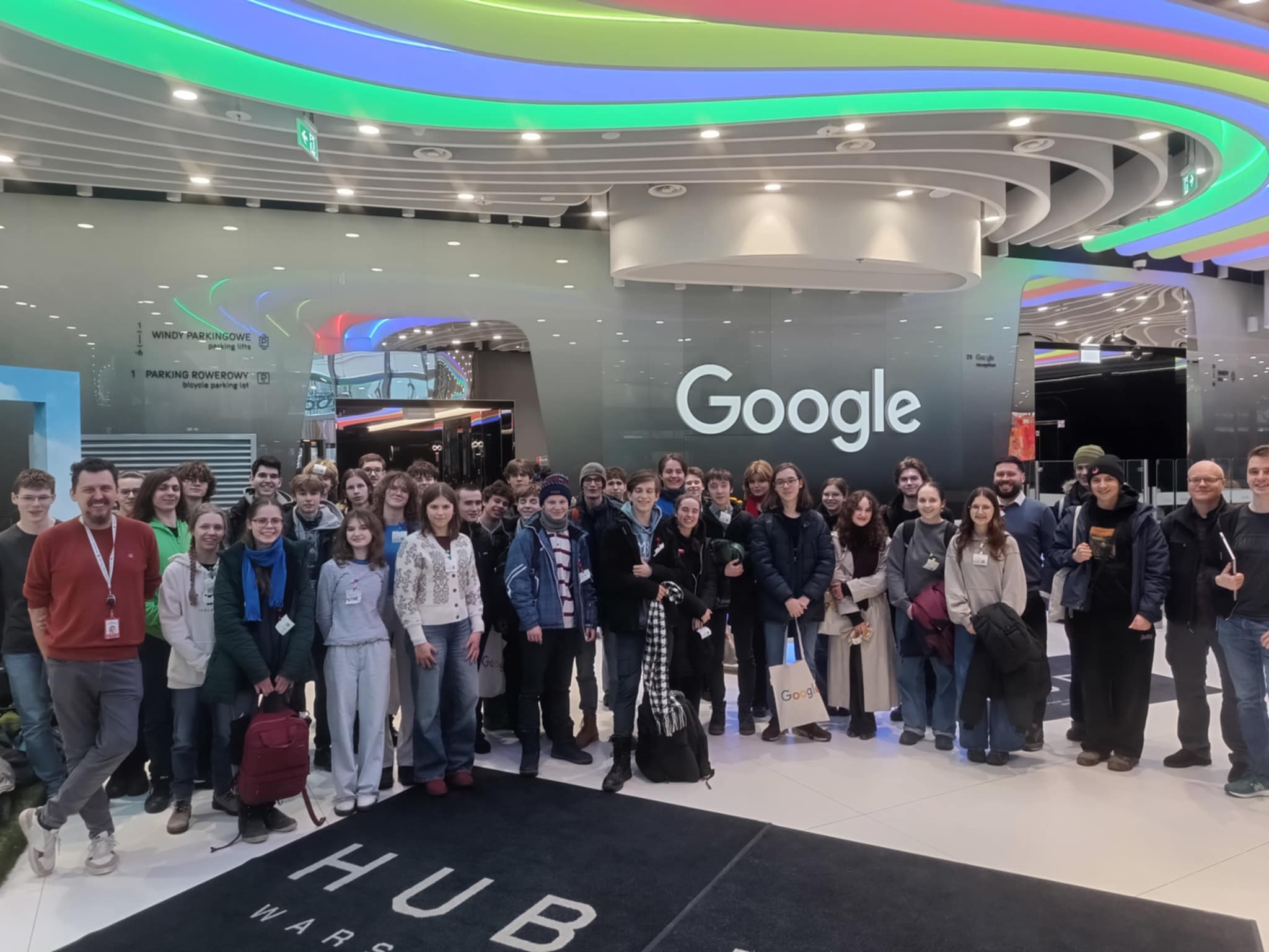 26.01.26 r.grupa uczniów naszej szkoły była w siedzibie firmy Google w Warszawie. Spotkanie dotyczyło zagadnień funkcjonowania firmy, a co najważniejsze zasad rekrutacji i pracy w Google. Nasi olimpijczycy byli bardzo zainteresowani dyskusją na temat programowania stron internetowych, systemami ich bezpieczeństwa. Wyjazd do firmy Google pokazał, jak ważna jest synergia nauki, pasji i pracy w rozwoju młodych talentów.