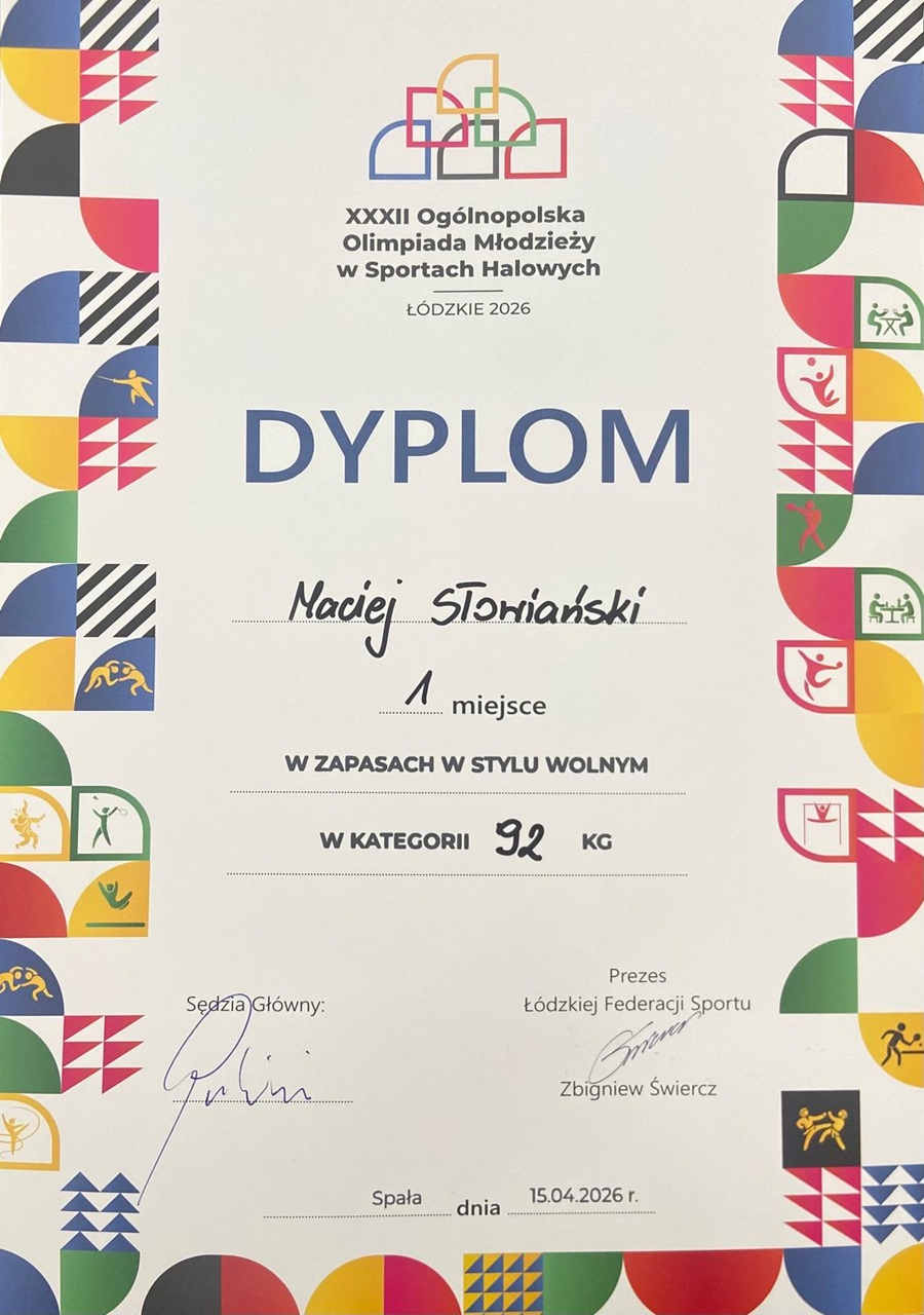 Uczeń klasy I D Maciej Słowiański, zdobył złoty medal na Ogólnopolskiej Olimpiadzie Młodzieży w zapasach w stylu wolnym. Tym samym wywalczył kwalifikację na Mistrzostwa Europy U17 w zapasach w stylu wolnym i będzie reprezentował Polskę podczas Mistrzostw Europy w Bułgarii.